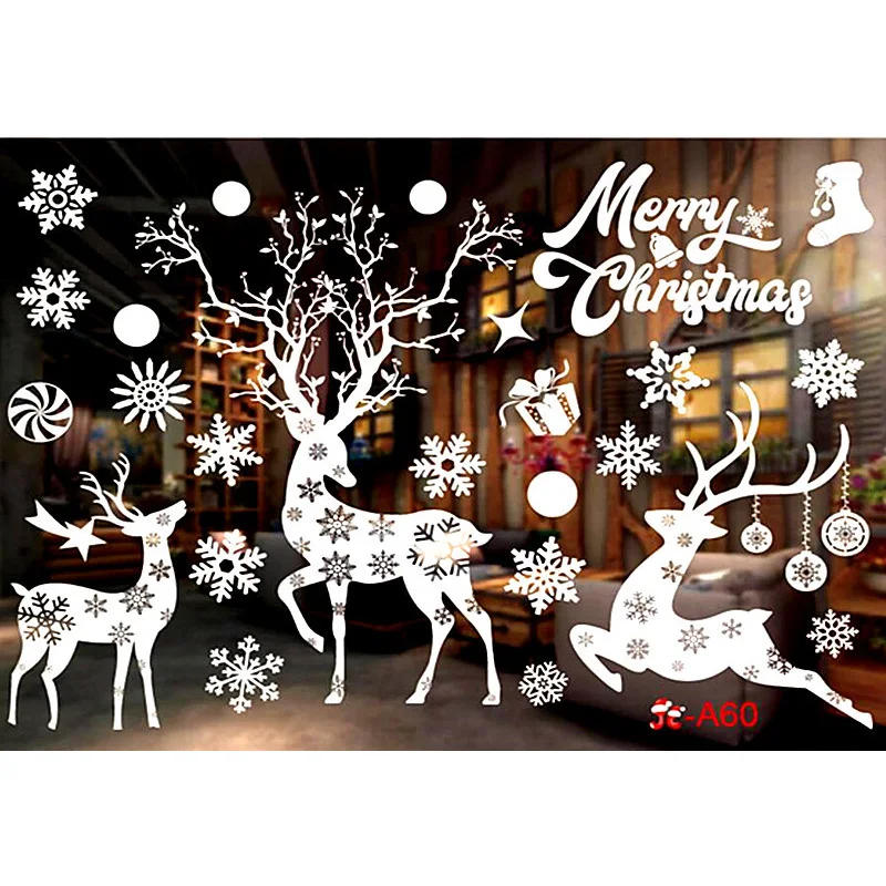 Christmas Snowflakes Electrostatic Window Clings Stickers Reindeer Santa Claus Window Decals Xmas Home Decorations New Year 2024
